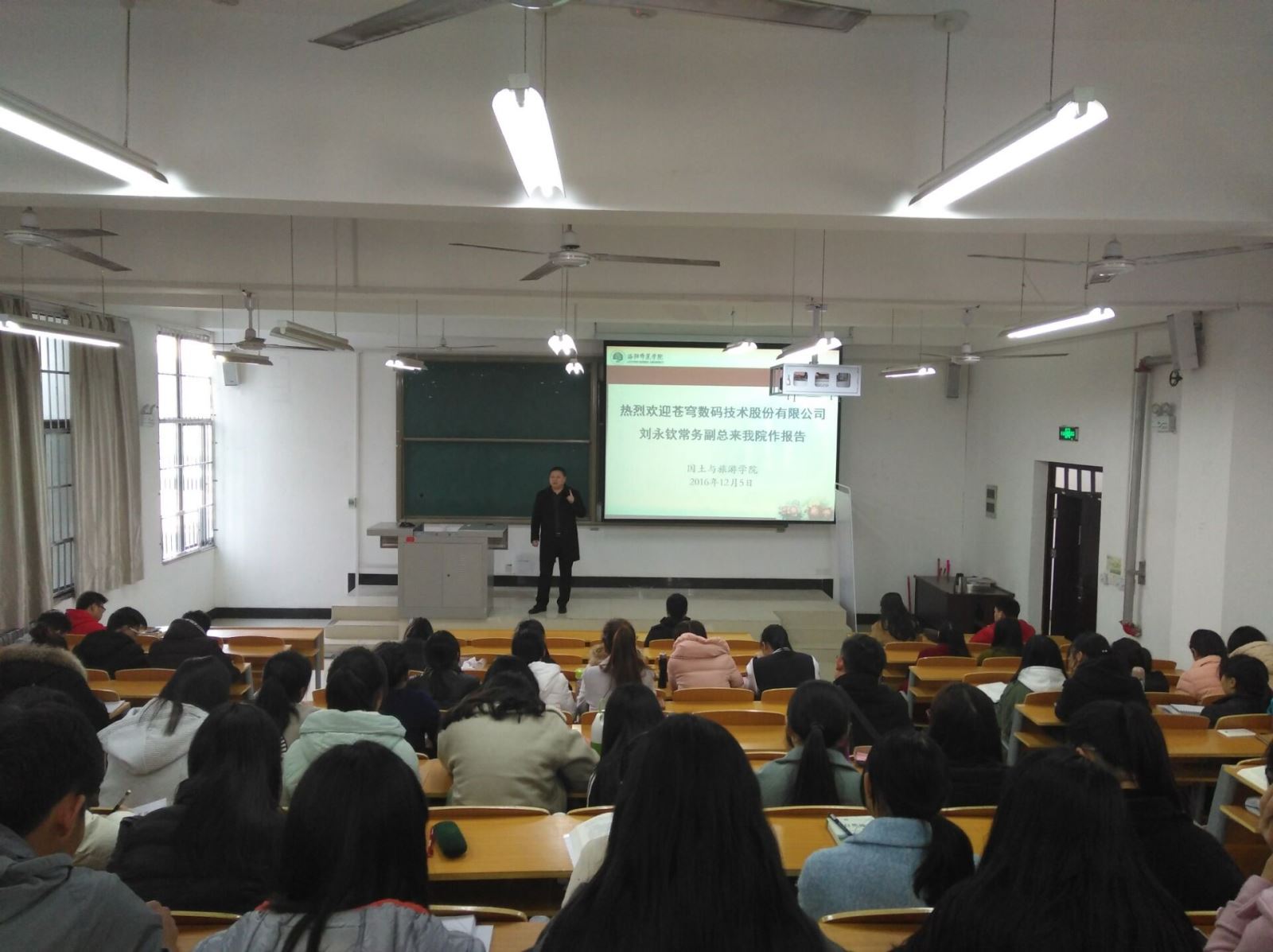 下午,應(yīng)國土與旅游學(xué)院秦院長的熱情邀請,劉總為該院的土地管理專業(yè)及地理信息系統(tǒng)專業(yè)共60余名學(xué)生做了報告。劉總首先結(jié)合自身的求學(xué)經(jīng)歷告訴大家要在扎實(shí)學(xué)習(xí)專業(yè)知識的同時開始清晰規(guī)劃以后的就業(yè)方向、明確選擇以后的就業(yè)平臺,不要“常立志,要立長志”,并以“古之成大事者,不惟有超世之才,亦有堅(jiān)韌不拔之志”與廣大師生共勉;其次就目前學(xué)生所學(xué)專業(yè)并結(jié)合行業(yè)的發(fā)展前景、就業(yè)形勢及蒼穹數(shù)碼的業(yè)務(wù)架構(gòu)進(jìn)行深度剖析,在演講過程中采取與學(xué)生互動的方式,極大地調(diào)動了學(xué)生活躍度與興趣,這種接地氣的互動不僅拉近了與學(xué)生的距離,同時也讓學(xué)生得到了知識,達(dá)到了寓教于樂的目的;最后劉總重點(diǎn)闡述了公司的企業(yè)文化“感恩、團(tuán)隊(duì)、效率、學(xué)習(xí)”,既讓學(xué)生對今日的校園時光有所反思,又讓學(xué)生對未來的職場充滿期待。最后在學(xué)生們熱烈的掌聲中愉快地結(jié)束了本次交流。