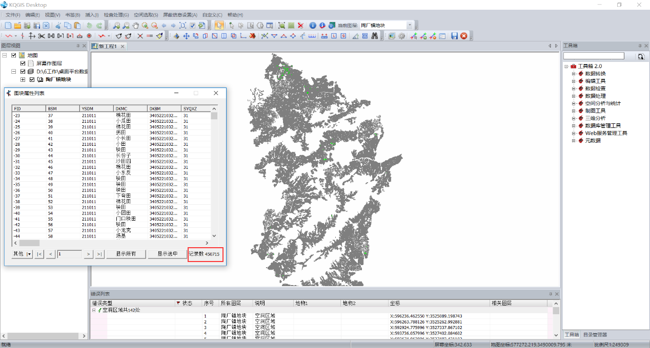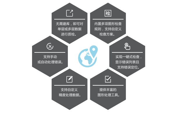 KQGIS Desktop支持高效的數(shù)據(jù)質(zhì)量檢查與批量處理,具備完善的數(shù)據(jù)檢查方案,支持?jǐn)?shù)據(jù)錯誤的手工及批量處理,工作效率高。