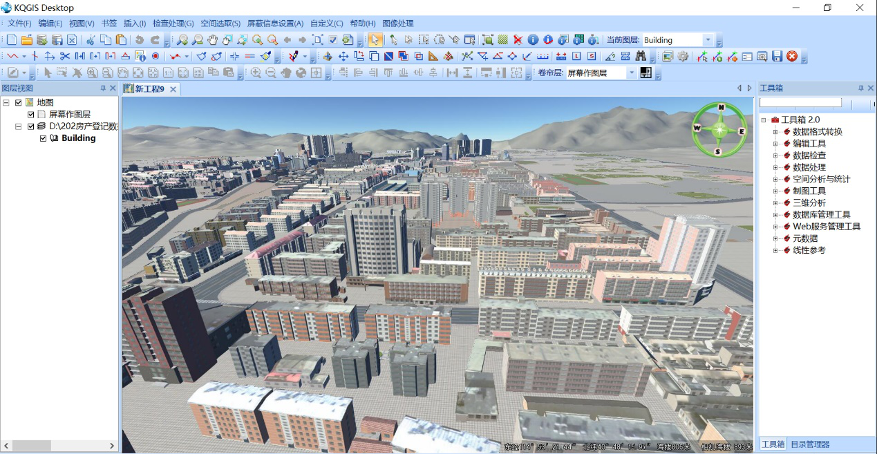 KQGIS Desktop采用二三維一體化技術(shù),將傳統(tǒng)的二維數(shù)據(jù)應(yīng)用延伸到三維精細化管理,從底層數(shù)據(jù)建設(shè)到上層業(yè)務(wù)應(yīng)用全面覆蓋,實現(xiàn)了數(shù)據(jù)、場景管理、操作、服務(wù)、可視化、分析等方面的二三維一體化,同時融入了傾斜攝影、BIM、激光點云等三維技術(shù),實現(xiàn)了從地上地下一體化、空中與地表一體化到室內(nèi)與室外一體化、宏觀與微觀一體化的深入發(fā)展和轉(zhuǎn)變。