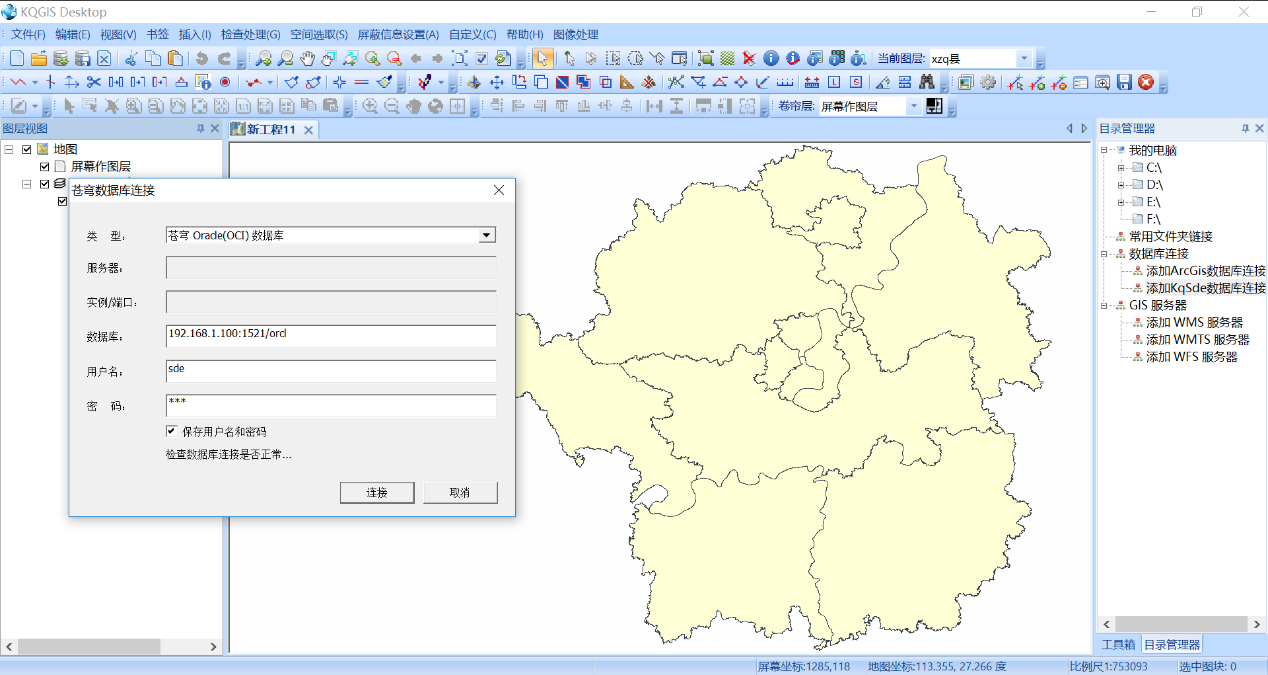KQGIS Desktop是一款支持跨平臺的專業(yè)桌面GIS應(yīng)用與開發(fā)軟件。創(chuàng)新融合空間大數(shù)據(jù)技術(shù)、二三維一體化技術(shù),支持海量二三維空間數(shù)據(jù)的一體化存儲、管理、可視化和分析等功能;具備強大的數(shù)據(jù)采集、編輯處理和地圖制圖能力,實現(xiàn)數(shù)據(jù)資源的本地管理和云端共享;支持.NET環(huán)境的插件式擴展開發(fā),結(jié)合實際業(yè)務(wù)需求,快速提供定制化應(yīng)用服務(wù)。