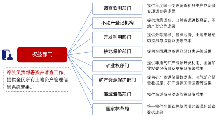《工作方案》指出:本次資產(chǎn)清查基準(zhǔn)時(shí)點(diǎn)為2023年12月31日。資產(chǎn)清查工作將按照“國(guó)家統(tǒng)一部署,省負(fù)總責(zé),市縣抓落實(shí)”的模式開(kāi)展,各?。▍^(qū)、市)也可結(jié)合資源稟賦、工作基礎(chǔ)、財(cái)力保障水平等,由省級(jí)統(tǒng)籌實(shí)施。資產(chǎn)清查工作由權(quán)益部門(mén)牽頭負(fù)責(zé),調(diào)查監(jiān)測(cè)、不動(dòng)產(chǎn)登記、開(kāi)發(fā)利用、耕地保護(hù)、礦業(yè)權(quán)、礦產(chǎn)資源保護(hù)、海域海島和國(guó)家林草局等部門(mén)提供各類自然資源資產(chǎn)數(shù)據(jù)、系統(tǒng)成果。