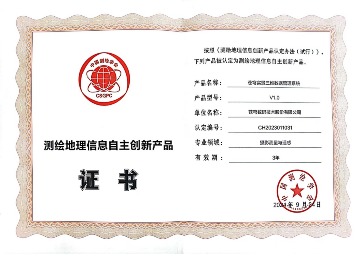 同時(shí),“蒼穹實(shí)景三維數(shù)據(jù)管理系統(tǒng)” 憑借創(chuàng)新性的技術(shù)架構(gòu)、強(qiáng)大的功能和廣泛的應(yīng)用前景,獲得了“測(cè)繪地理信息自主創(chuàng)新產(chǎn)品”。這一榮譽(yù)彰顯了蒼穹數(shù)碼在技術(shù)研發(fā)方面的不懈努力和勇于創(chuàng)新的精神。該系統(tǒng)為測(cè)繪地理信息行業(yè)帶來(lái)了新的發(fā)展動(dòng)力,為實(shí)現(xiàn)實(shí)景三維數(shù)據(jù)的高效管理和深度應(yīng)用提供了有力支撐。