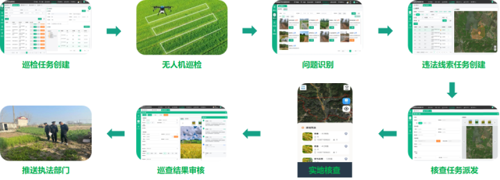 借助無人機低空監(jiān)測能力,結(jié)合蒼穹低空AI引擎,構(gòu)建“空天地視網(wǎng)”智能感知體系,以AI遙感智能解譯、AI視頻智能識別為手段,全方位精準捕捉涉耕問題,并形成多源問題識別、實地巡查核實、審核對接處置管理閉環(huán),確保各類涉耕問題早發(fā)現(xiàn)、早制止、早處理。