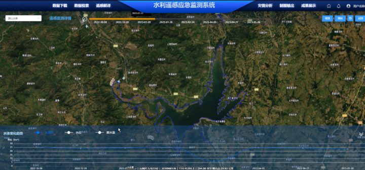 (4)通過對(duì)蓄滯洪區(qū)、水庫等水利工程進(jìn)行動(dòng)態(tài)連續(xù)監(jiān)測,利用長時(shí)間序列數(shù)據(jù),動(dòng)態(tài)展示災(zāi)害發(fā)展過程及影響范圍,提升災(zāi)害監(jiān)測、應(yīng)急調(diào)度、災(zāi)后損失評(píng)估能力。