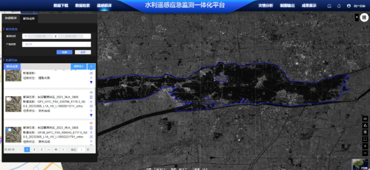 該平臺(tái)基于多源衛(wèi)星數(shù)據(jù)快速獲取、多種智能提取模型、海量數(shù)據(jù)分發(fā)等技術(shù),實(shí)現(xiàn)洪澇災(zāi)害應(yīng)急監(jiān)測、河湖“四亂”監(jiān)測、大壩形變監(jiān)測、湖庫水資源監(jiān)測等,助力構(gòu)建“天空地水工”一體化監(jiān)測體系。