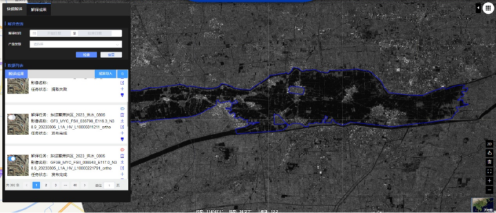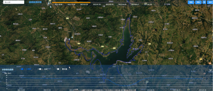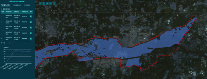 通過(guò)對(duì)蓄滯洪區(qū)等水利工程進(jìn)行動(dòng)態(tài)連續(xù)監(jiān)測(cè),當(dāng)洪澇災(zāi)害發(fā)生時(shí),平臺(tái)支持連續(xù)多日動(dòng)態(tài)監(jiān)測(cè)蓄滯洪區(qū)的水體面積、水深變化,動(dòng)態(tài)展示災(zāi)害發(fā)展過(guò)程及影響范圍,提升災(zāi)害監(jiān)測(cè)、應(yīng)急調(diào)度、災(zāi)后損失評(píng)估能力。
