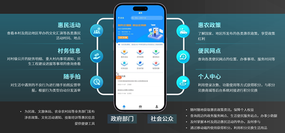 4、“便民化”服務(wù)直達(dá):平臺延伸至移動端,為村民提供政策咨詢、辦事指南、問題上報、村務(wù)公開等便捷服務(wù)通道,有效拉近了干群距離,提升了村民的參與感和獲得感,讓數(shù)字紅利真正惠及千家萬戶。