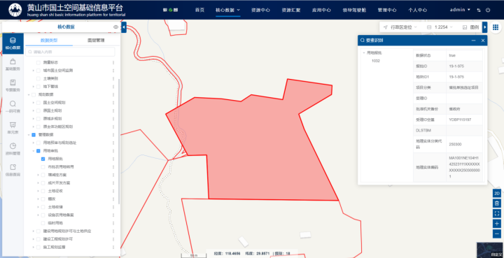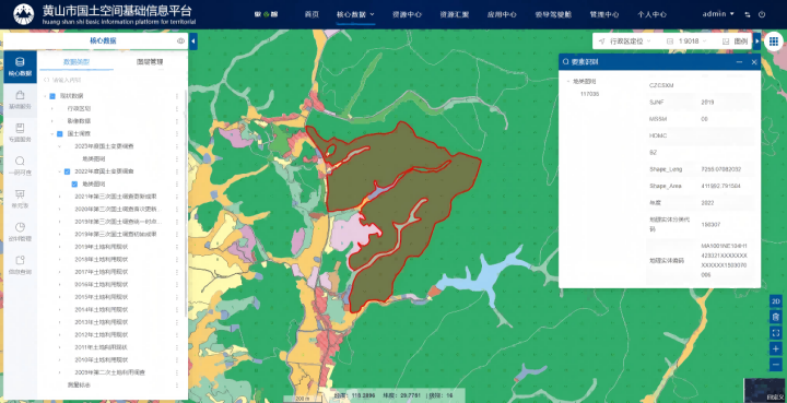 基于黃山市國土空間基礎信息平臺中自然資源存量數據,蒼穹數碼對現狀數據、規(guī)劃數據、管理數據等相關圖層進行精準治理與批量清洗,完成了調查監(jiān)測、國土空間規(guī)劃、土地管理、不動產登記、耕地保護等170個圖層中同一個地理實體識別及批次統一賦碼,通過“地理實體編碼”建立起了“一張圖”中各數據間的時空關聯關系;同時,將地理實體標識節(jié)點平臺賦碼能力與黃山市規(guī)劃審批、用地報批、土地供應、不動產登記等各業(yè)務環(huán)節(jié)進行了深度嵌合,確保業(yè)務數據能被實時賦碼并及時回流至國土空間基礎信息平臺,解決存量數據與增量數據割裂問題,形成活態(tài)“一張圖”。