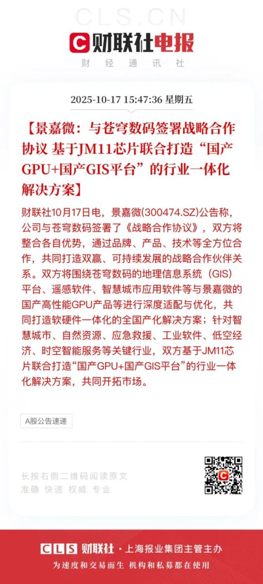 蒼穹數(shù)碼與景嘉微簽署戰(zhàn)略合作協(xié)議,共筑“國(guó)產(chǎn)GIS+國(guó)產(chǎn)GPU”產(chǎn)業(yè)新基座