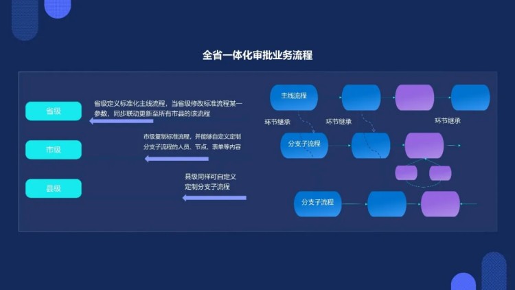 系統(tǒng)依托蒼穹數(shù)碼全面自主建設(shè)的圖文一體化工作流平臺,創(chuàng)新應(yīng)用業(yè)務(wù)流程分級授權(quán)機制,實現(xiàn)全省審批標準統(tǒng)一與地方業(yè)務(wù)特色兼顧的雙重目標:省級層面牽頭制定市縣級勘測定界、組卷、初審至省級審查的標準化主線流程,各設(shè)區(qū)市協(xié)辦處室則可結(jié)合本地實際,靈活定制分支子流程節(jié)點與表單,構(gòu)建起省、市、縣多級業(yè)務(wù)線上一體化辦理、聯(lián)動審批、信息回流的閉環(huán)體系。在監(jiān)管效能上,系統(tǒng)通過設(shè)置各環(huán)節(jié)辦理時限的提醒與限制機制,以全流程線上化運作,確保省廳對審批全鏈條的全程跟蹤監(jiān)控。