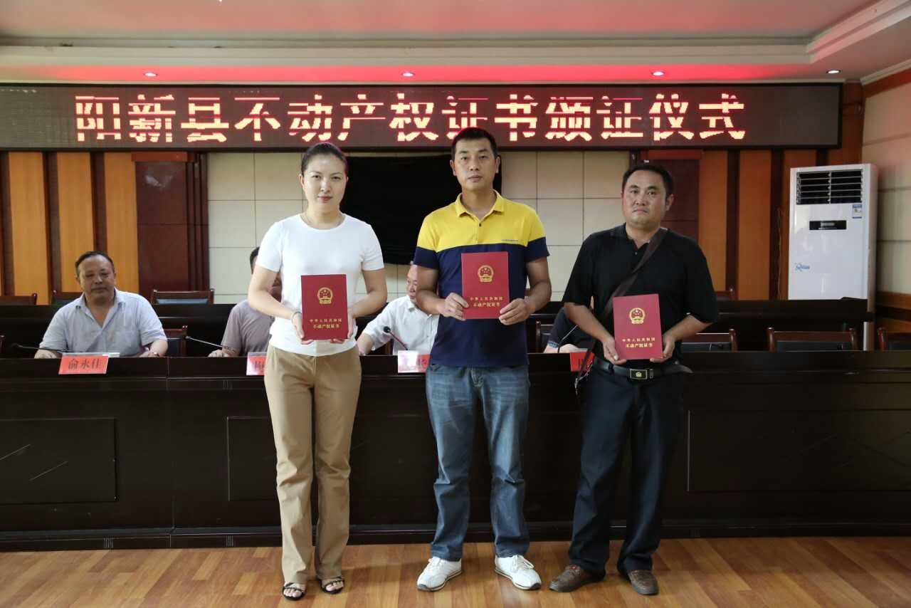 2016年6月30日上午,黃石市陽新縣不動產(chǎn)權(quán)證書頒證儀式在陽新縣行政服務(wù)大廳隆重舉行。省、市相關(guān)部門領(lǐng)導、技術(shù)支撐單位蒼穹數(shù)碼代表等共同出席頒證儀式。群眾代表拿到了編號為“鄂(2016)陽新縣不動產(chǎn)第0000001”的不動產(chǎn)權(quán)證書。標志著黃石市陽新縣結(jié)束了土地、房產(chǎn)、林地、草地等不動產(chǎn)分散登記的歷史,宣告該市不動產(chǎn)統(tǒng)一登記制度正式實施,開啟了不動產(chǎn)統(tǒng)一登記的新征程。