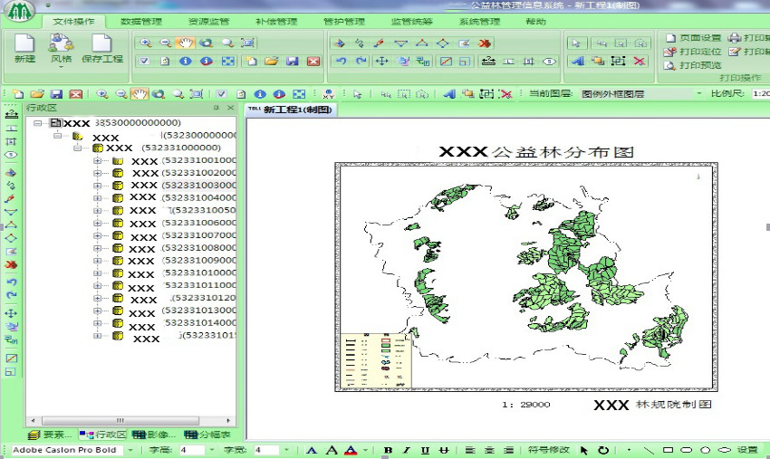按照市、縣等行政區(qū)劃制作公益林分布圖,生成公益林統(tǒng)計表。